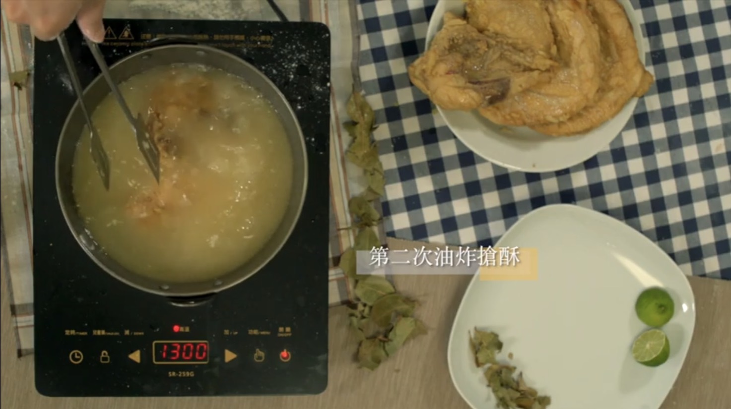 第四步:將油加熱至160度,並分兩次炸,第一次炸2分鐘,第二次炸搶酥。
